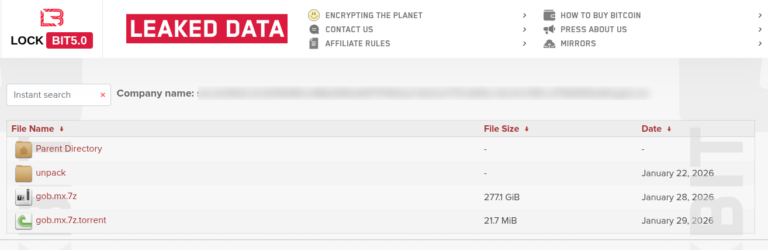Se confirmó esta semana un incidente cibernético que compromete datos sensibles del Gobierno de México y de la Sociedad Hipotecaria Federal (SHF), luego de que un grupo de ransomware difundiera información en foros de la dark web.El grupo criminal LockBit, en su variante 5.0, liberó cerca de 277 GB de información confidencial, que incluye bases de datos completas, datos bancarios y datos personales asociados a créditos hipotecarios.Según lo documentado por Silikn, la filtración fue anunciada por los propios cibercriminales tras un ataque ocurrido alrededor del 21 de enero de 2026, en el cual habrían logrado comprometer la infraestructura tecnológica de la SHF, cifrando sistemas críticos y generando interrupciones operativas de consideración.En cuanto al impacto del incidente, el ataque provocó la paralización temporal de múltiples procesos clave dentro de la SHF, entre ellos trámites y validación de créditos hipotecarios, avalúos y evaluación de riesgos, dispersión de recursos operativos y el acceso pleno a bases de datos esenciales.